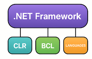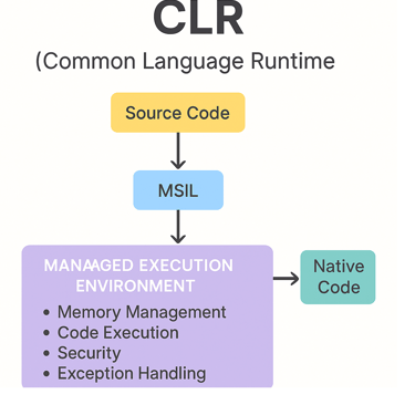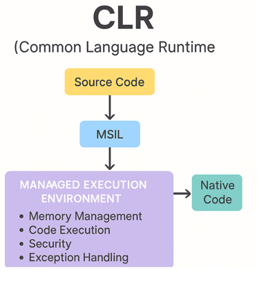 CLR (Common Language Runtime): Manages code execution, memory, garbage collection, etc.