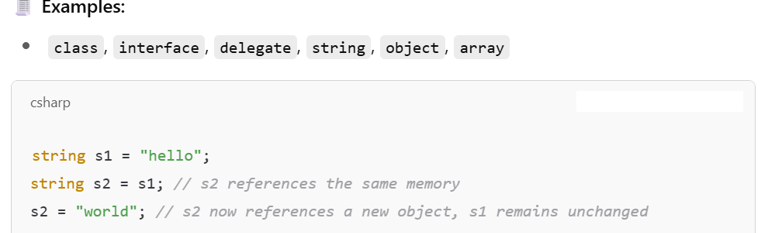 Note: string is a reference type, but it behaves like a value type due to immutability.